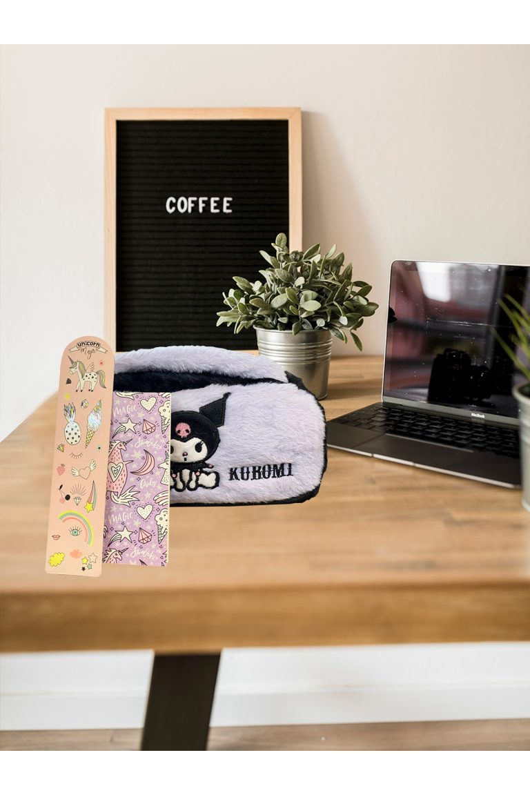 ₺469,90 KDV DahilKuromi Mor Peluş Kalem Kutu, Unicorn Temalı Not Defteri, Kitap Ayracı