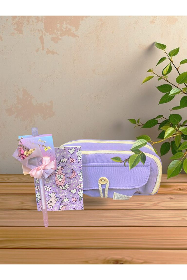 ₺599,90 KDV DahilDüğmeli Mor Kalem Kutu, Unicorn Temalı Not Defteri, Kuru Çiçekli Tükenmez Kalem