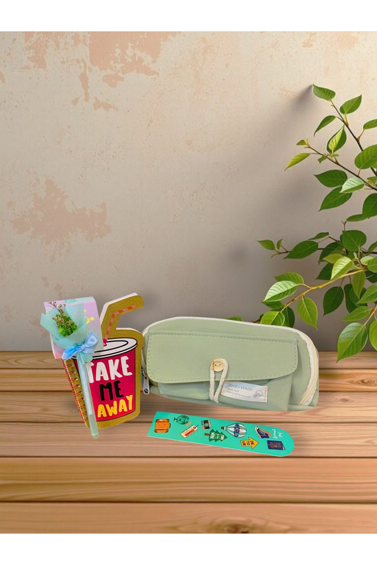 ₺569,90 KDV DahilDüğmeli Yeşil Kalem Kutu, Travel Kitap Ayracı, Kuru Çiçek Tükenmez Kalem, Take My Away Bloknot