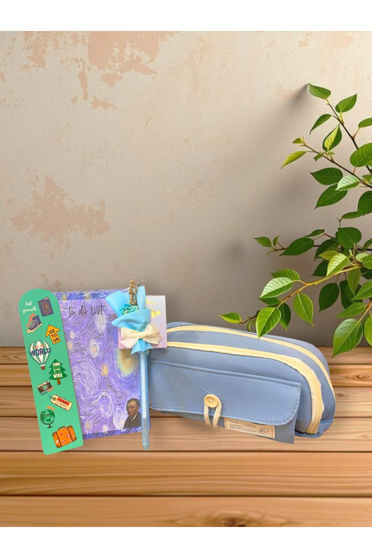 ₺599,90 KDV DahilDüğmeli Mavi Kalem Kutu,Yıldızlı Gece To Do List,Travel Temalı Kitap Ayracı,Kuru Çiçekli Kalem