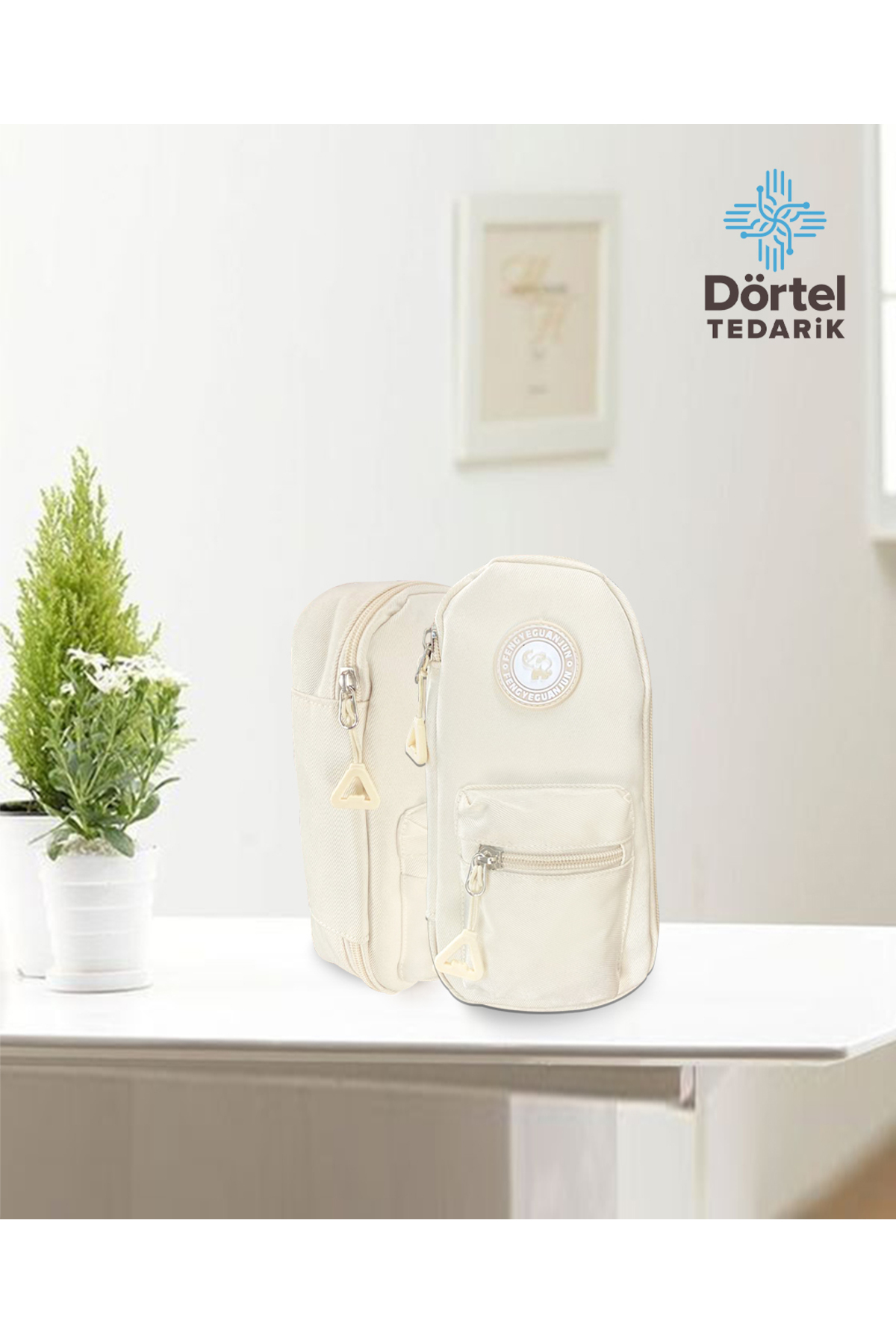 Elephant 2 Fermuarlı Kumaş Kalem Kutu Bej Kalem Çantası