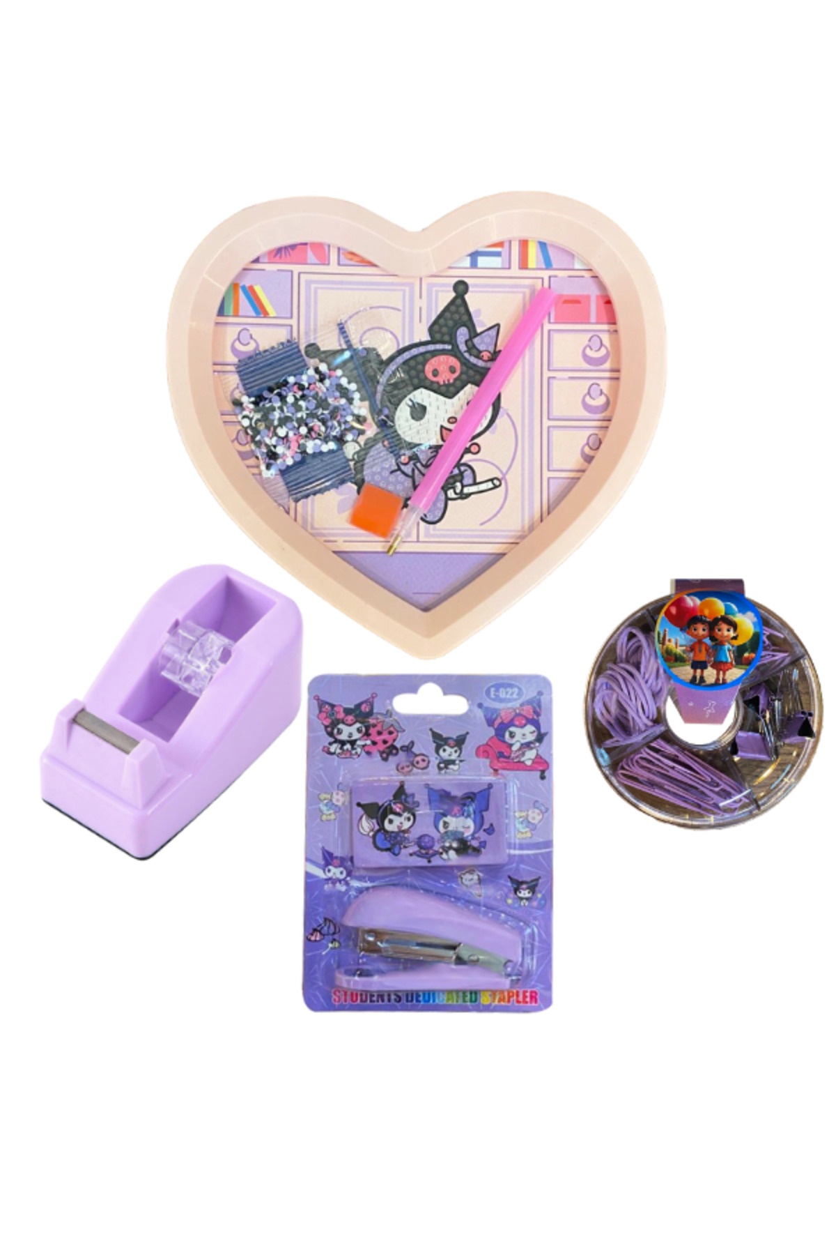 – Türkiye’de üretilen Kuromi Temalı Mozaik Boyama Seti, yerel işçiliği destekler ve kaliteli malzemelerle üretilmiştir.; – Bant kesme makinesi, mozaik çalışmalarınızda kesim işlemlerini kolaylaştıran pratik bir araçtır.; – Ataş seti, küçük parçaların sabitlenmesi için idealdir ve mozaik projelerinizde ekstra destek sağlar.; – Zımba seti, mozaik parçalarının daha sağlam bir şekilde sabitlenmesine yardımcı olur ve dayanıklılığı artırır.;